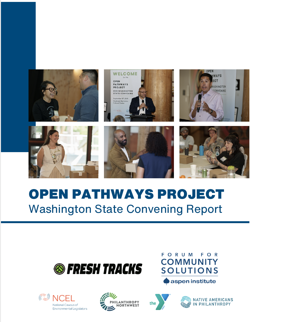 The Open Pathways Project (OPP), was created by the Aspen Institute Forum for Community Solutions and Fresh Tracks, Native Americans in Philanthropy (NAP), YMCA Bold & Gold, the National Caucus for Environmental Legislators (NCEL), and others in 2021 to ensure that the powerful results of time spent outdoors are accessible to everyone and embedded in our policies, funding strategies, and programs. With a focus on state and local impact, OPP is building a future where institutional support for outdoor experiences is sustainable, resilient, and based on best practices– laying the crucial groundwork for long-term systems change.